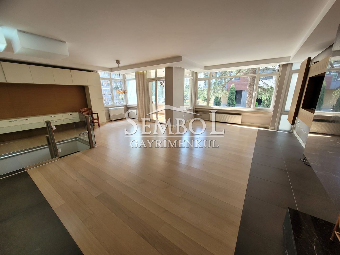 Aktif Şömineli, 55m2 Salonlu, 8m2 Balkonlu, Masif Parkeli, Özel Tasarım Tv Ünitesi,