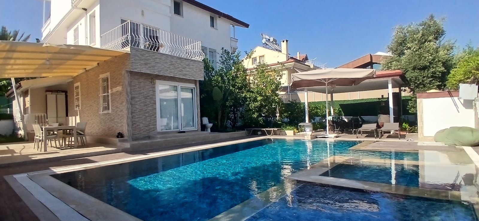 Bu villa 500 m² brüt kullanım alanına sahip olup toplam 6 oda + 2 salon + 2 mutfaktan oluşuyor. 2021 yılında komple yenilenmiş, havuz ve çatı katı sıfır yapılmıştır.
