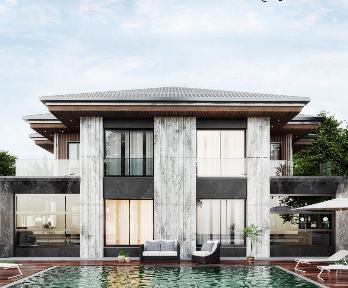 Mermer Sütunları villamızın cephesine ve iç mekanlarına eşsiz bir zarafet ihtişam katıyor.