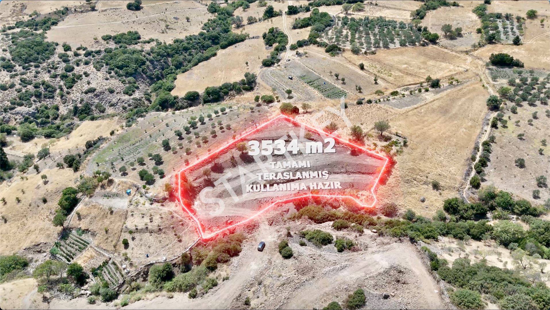 ✅ 3534 m² genişliğinde, teraslanmış ve temizlenmiş arazi